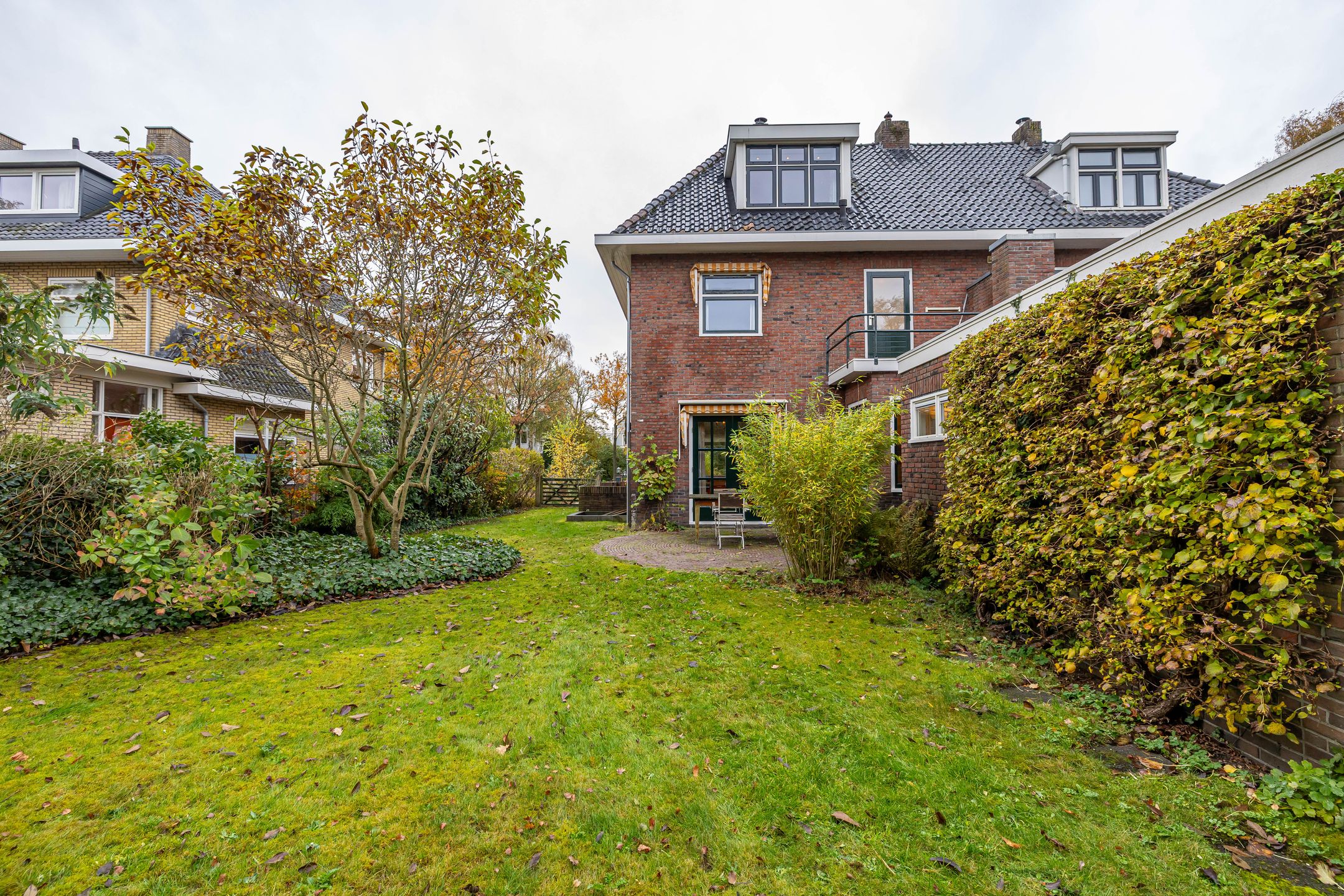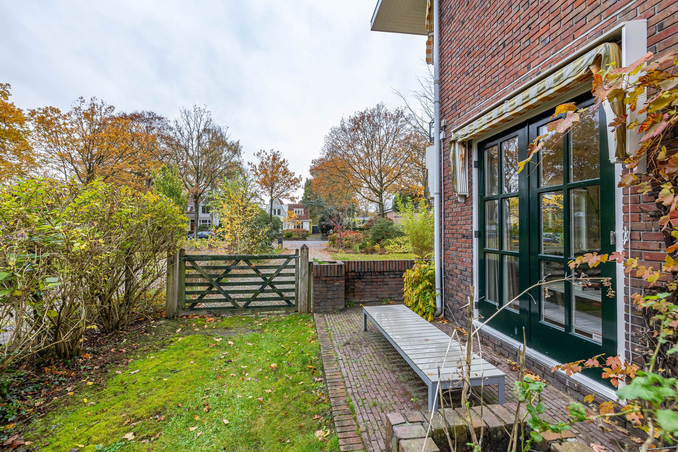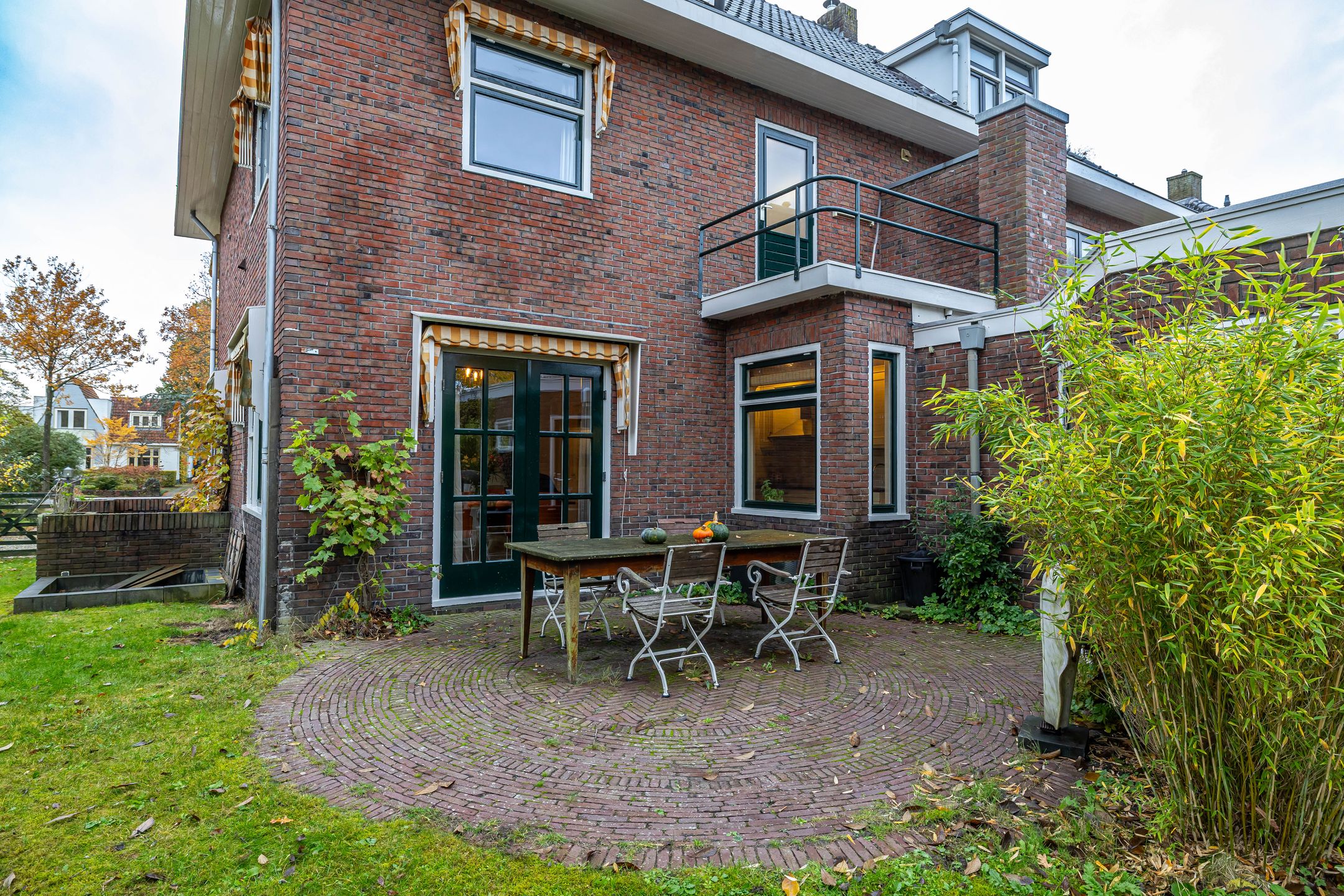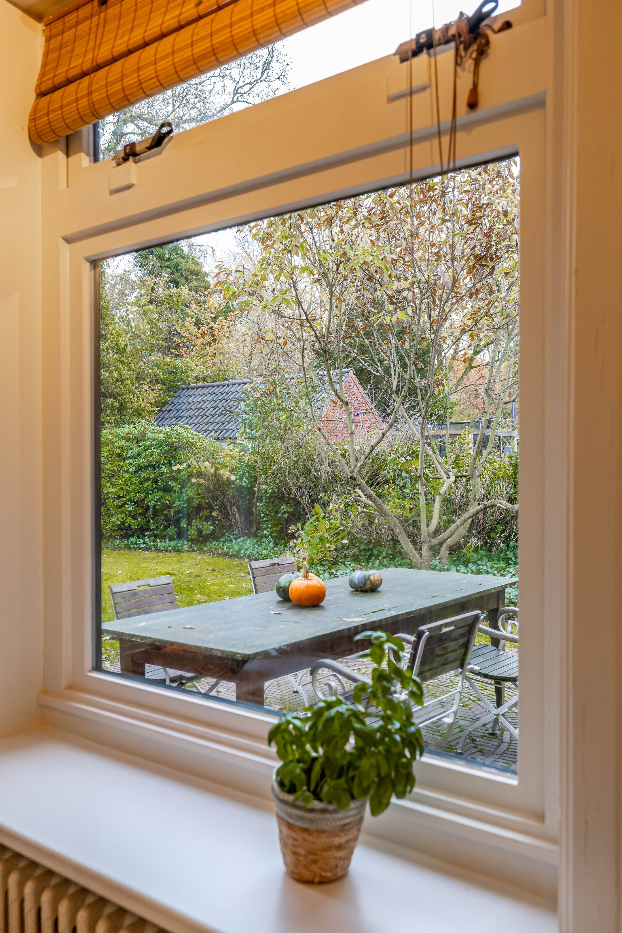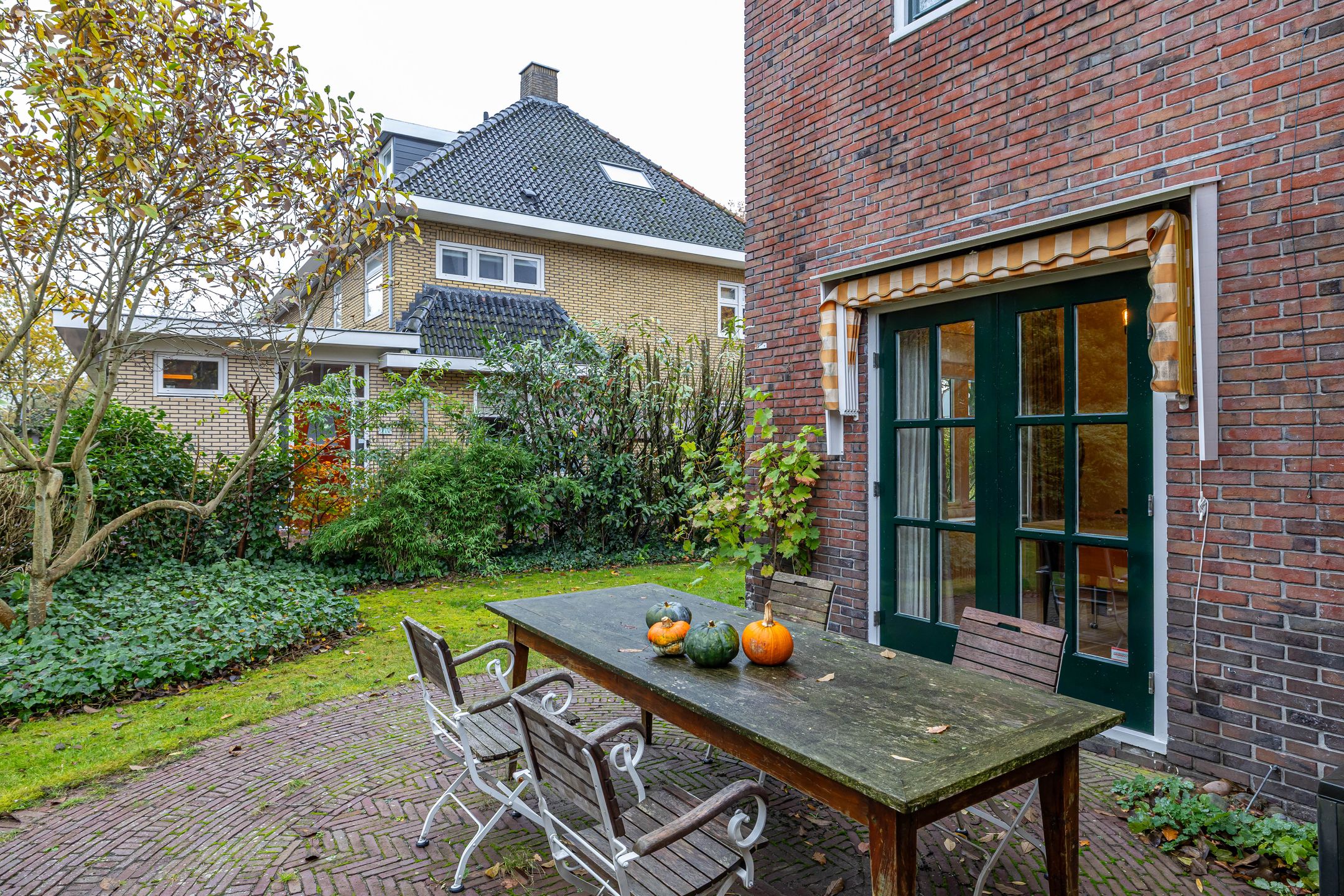 De groenrijke en fraai aangelegde tuin beperkt zich niet tot de achtertuin, maar omvat ook de zij- en voortuin. Het geheel loopt naadloos in elkaar over, zodat je van 's ochtends vroeg in het oosten tot in de avondzon in het westen kunt genieten. Rondom voorzien van fraaie markiezen, passend bij de statige uitstraling.