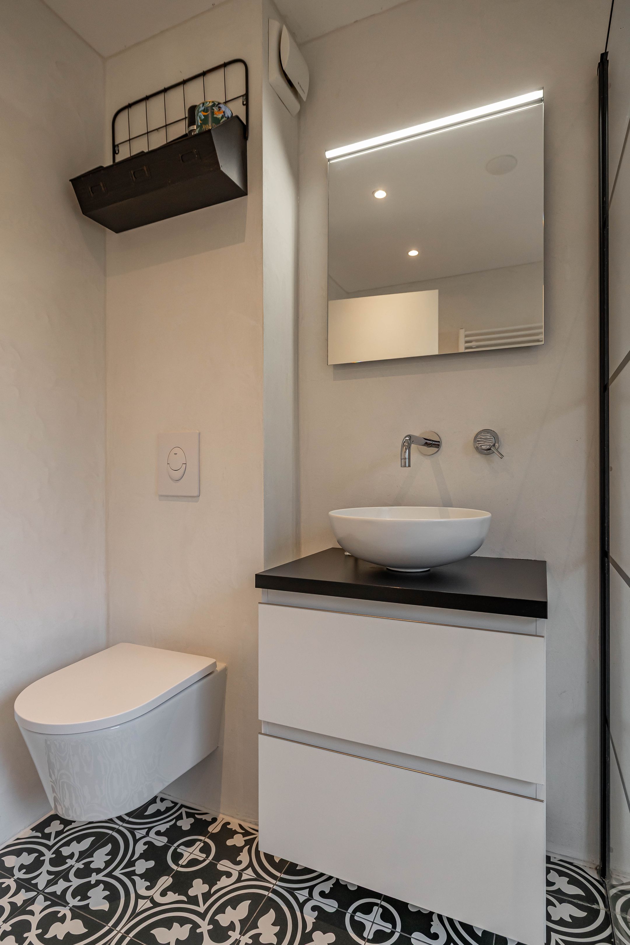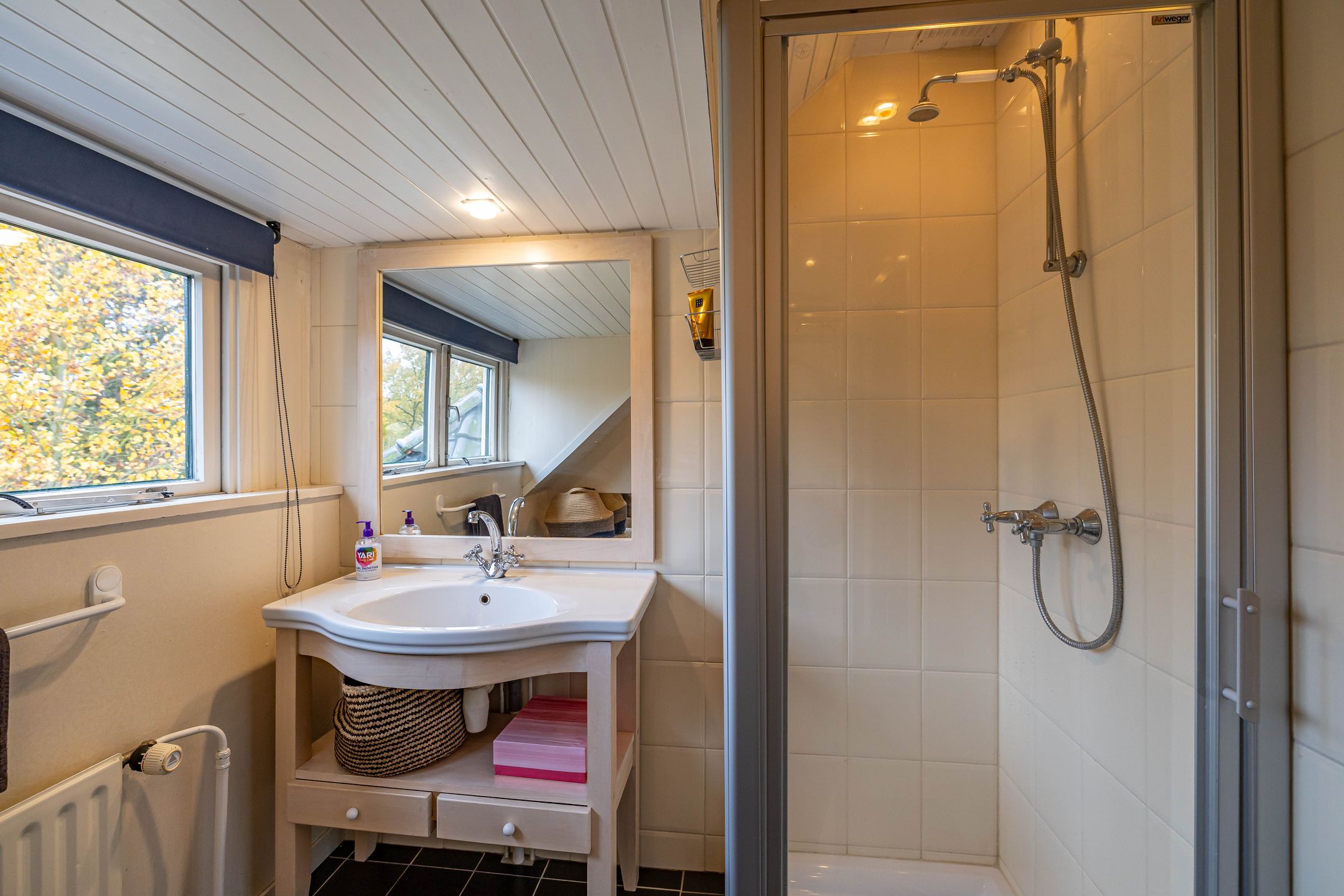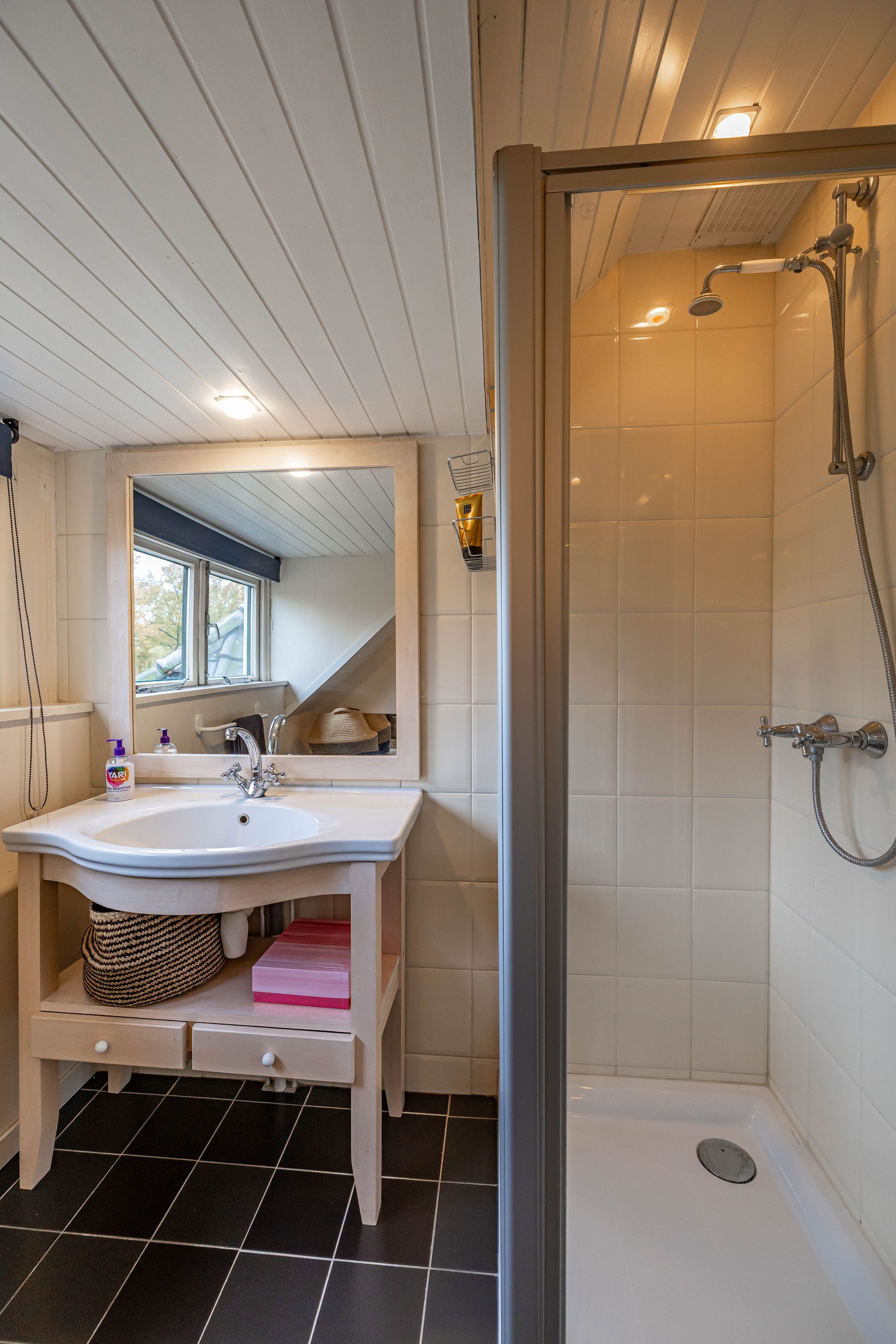 De keuken is uitgerust met een uitgebreide, functionele keukenopstelling in landelijke stijl, passend bij het karakter van het huis. De inbouwapparatuur bestaat uit een inductiekookplaat met afzuigkap, koelkast, oven en vaatwasser. De aangrenzende bijkeuken biedt ruimte voor witgoed en extra bergruimte.
