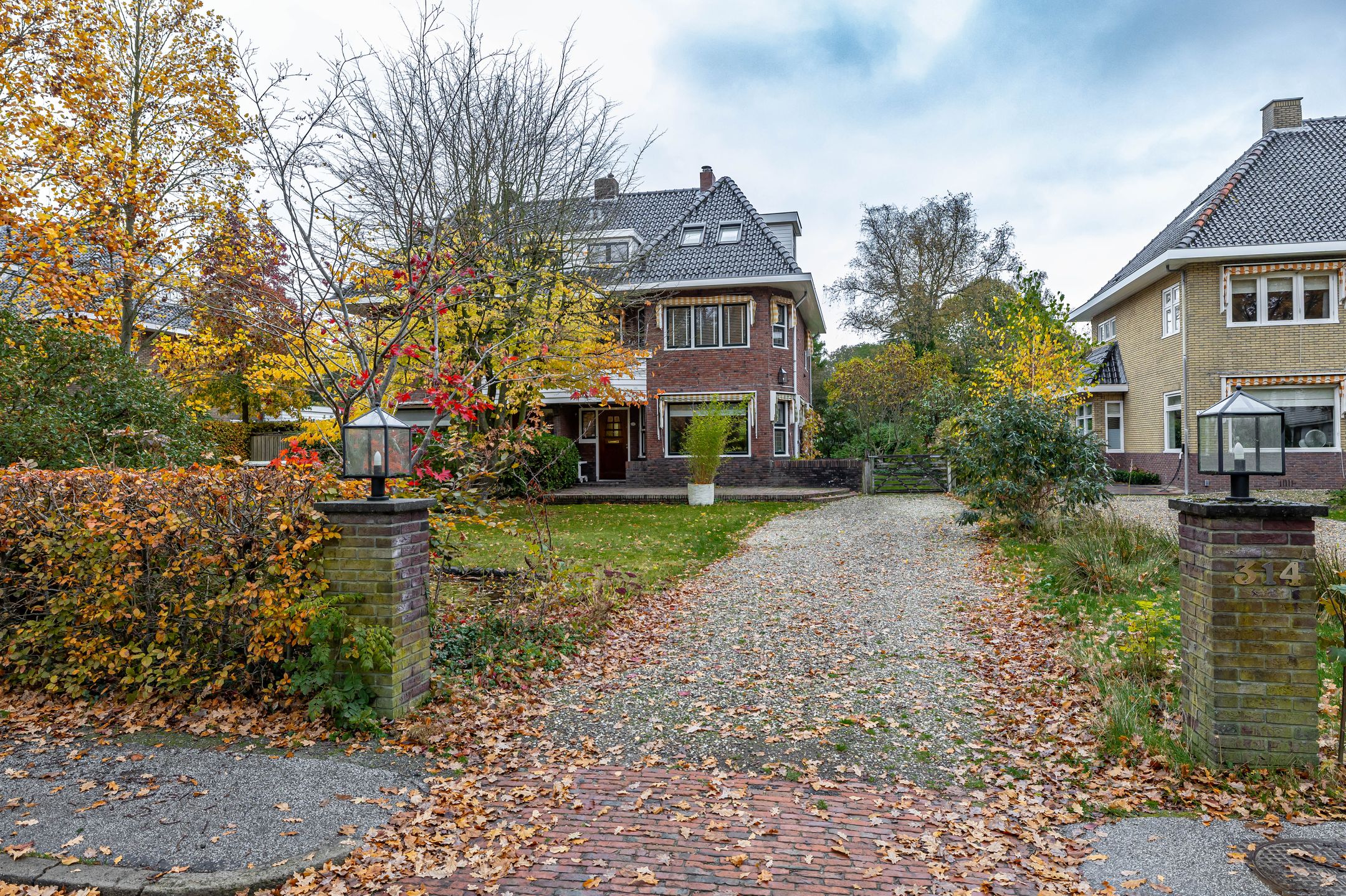 Een klassieke schoonheid: dit authentieke helft-van-een-dubbel woonhuis uit 1933 met zijn robuuste uitstraling en lange oprijlaan.